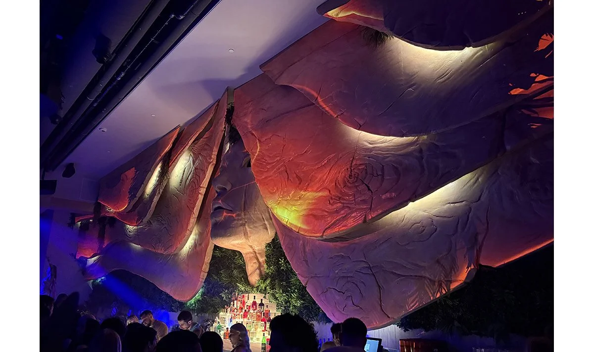 For the reimagined Maya Day + Nightclub in Scottsdale, I led the design development for several large-scale installations, most notably The Goddess—a 70-foot sculptural centerpiece spanning the full width of the main room. Positioned above bottle service booths and overlooking the central dance floor, the installation anchors the venue’s visual identity and immersive atmosphere.