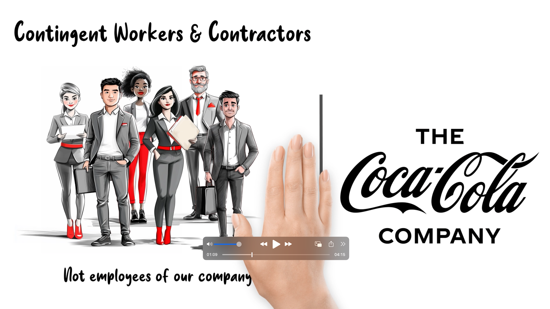 This motion graphics piece was created for The Coca-Cola Company to clearly explain the difference between W-2 employees and 1099 independent contractors. I was responsible for the project from concept to completion — writing the original script (through multiple revisions), designing all visuals, recording the voiceover, and animating the final piece. The video was well received, and working with Coca-Cola was a true pleasure.